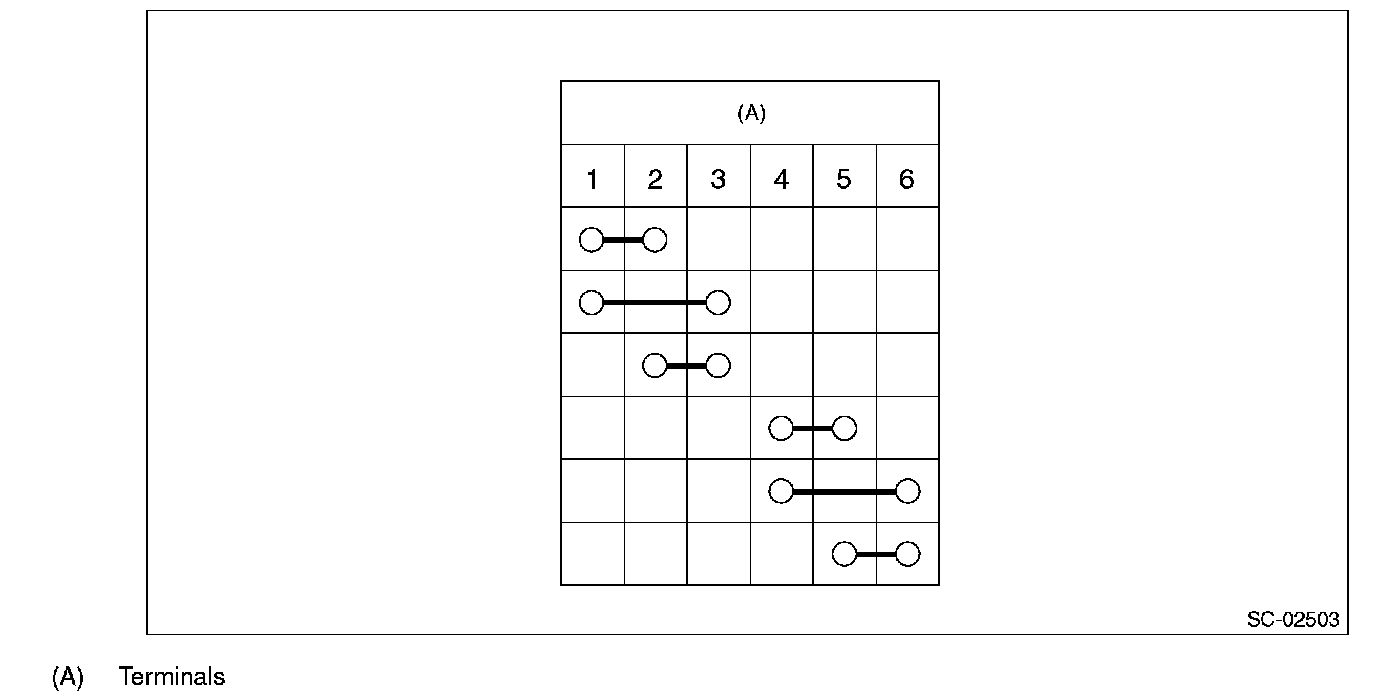 Inspect the continuity between the stator coil terminals. If continuity is not as shown in the table, replace the stator coil.