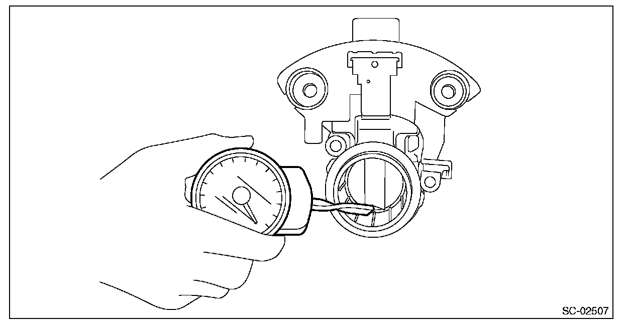 CAUTION: There is the possibility of damaging the diodes if a mega-tester (used to measure high voltages) or a similar measuring instrument is used. Never use a mega tester or equivalent for this test.