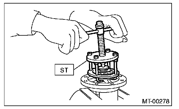 4) Using the ST, remove the roller bearing.