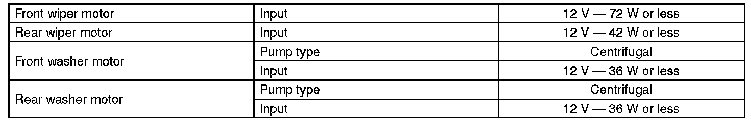 Wiper and Washer Systems: Specifications