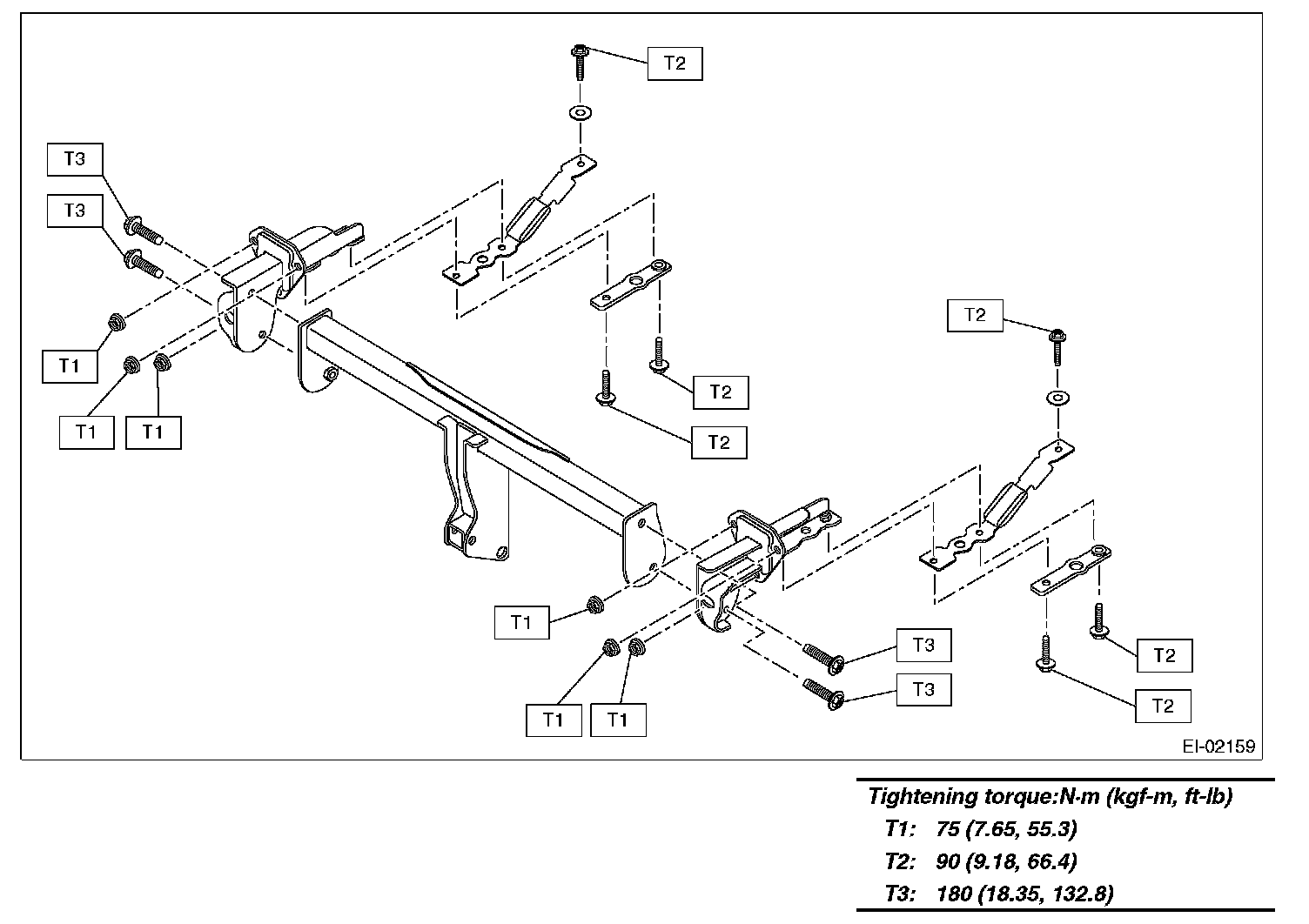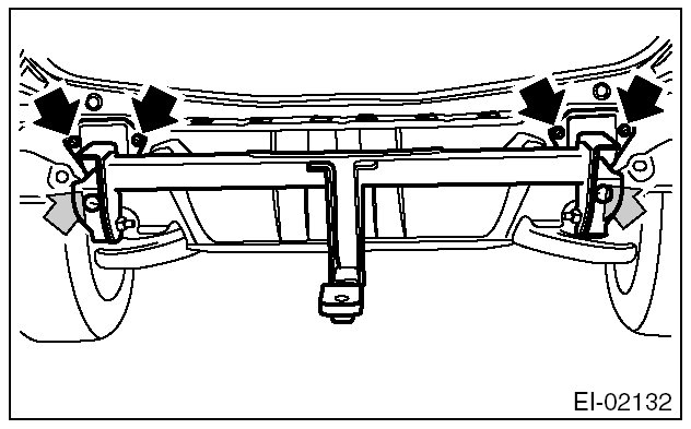5. Remove the nuts, and then remove the trailer hitch main frame assembly.