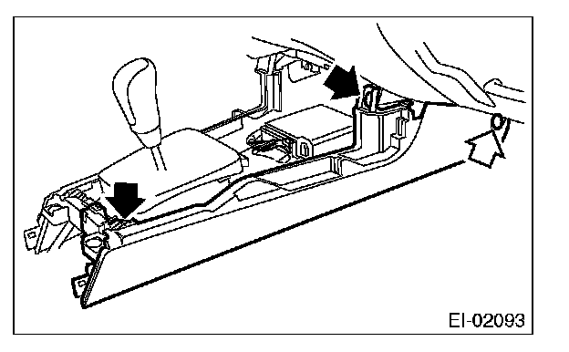 3. Detach the plastic hooks (A) and pull up on the console front panel.
