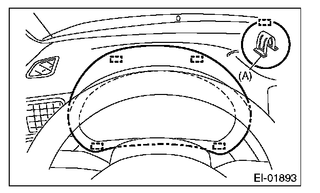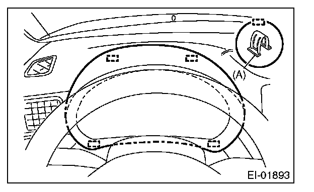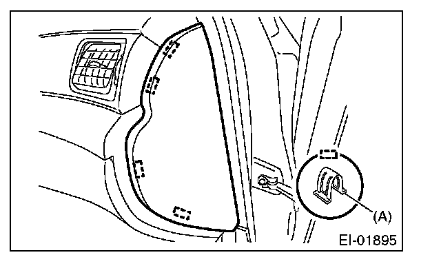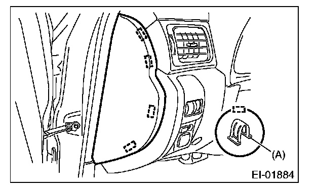 1. Detach the plastic hooks (A) and remove the instrument panel side cover LH.
