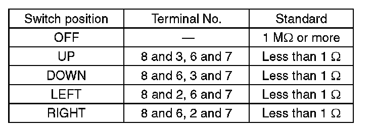 2. Check the resistance between remote control mirror switch terminals.