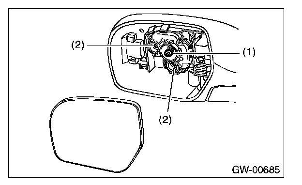 3. Lift the lower part of the mirror and the outer side, and remove fitting (1) and (2).