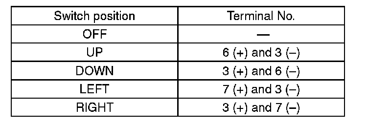 2. Apply battery voltage between the outer mirror connector terminals and check the mirror operation.