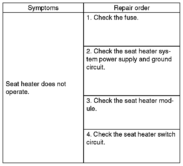 Remove the seat heater fuse, and then visually check.