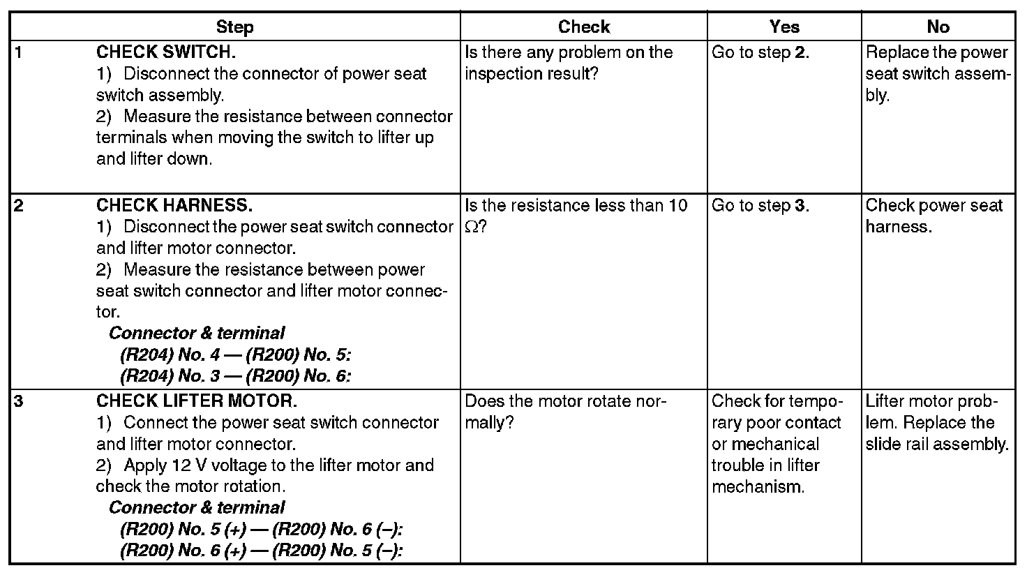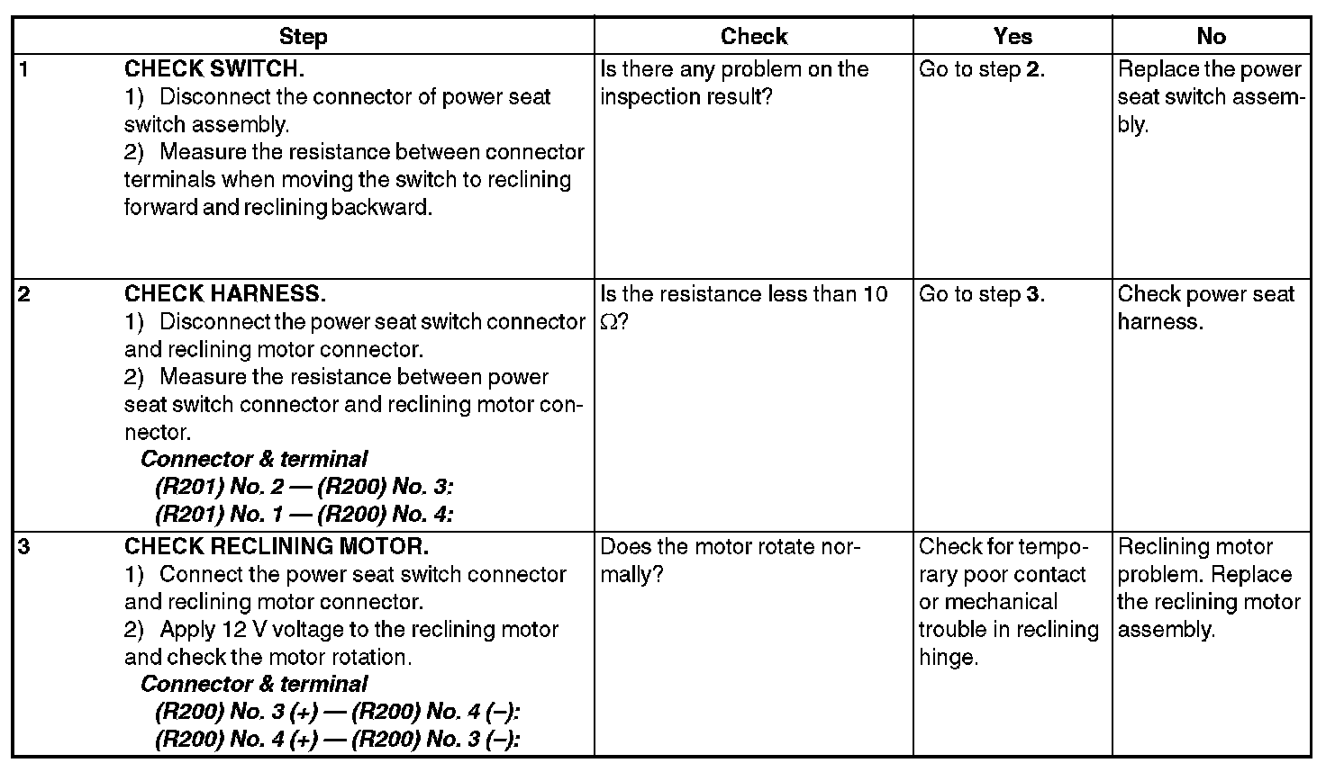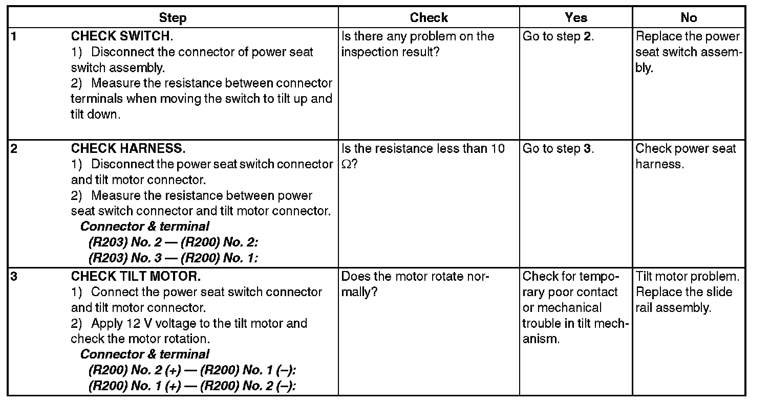 Power Seat SystemINSPECTION