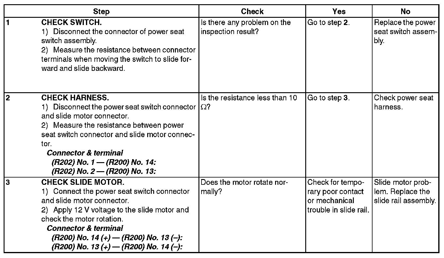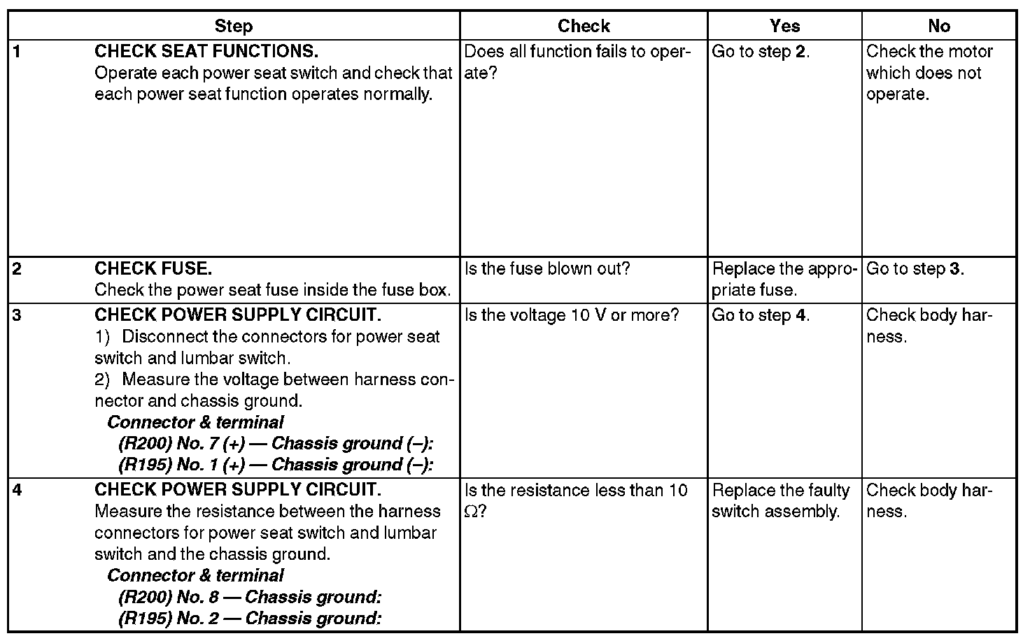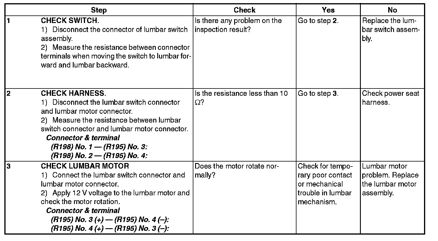 Power Seat SystemINSPECTION