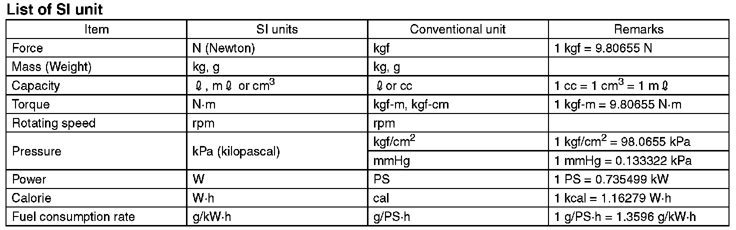 The figure used in these manuals are described in the SI units and conventional units are described in ( ).