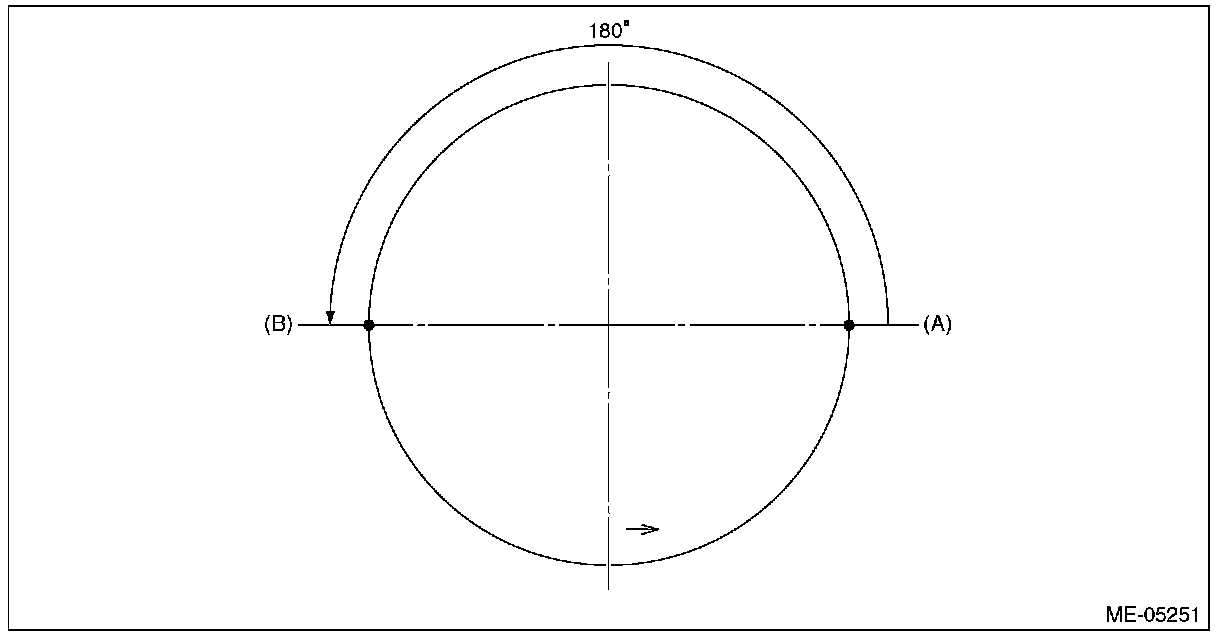 (2) Position the ring gap of second ring at (B) in the figure on the 180° opposite direction of (A).