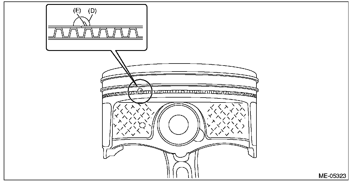 ^ Check that the ring gaps is not positioned within the range of piston skirt extended line.
