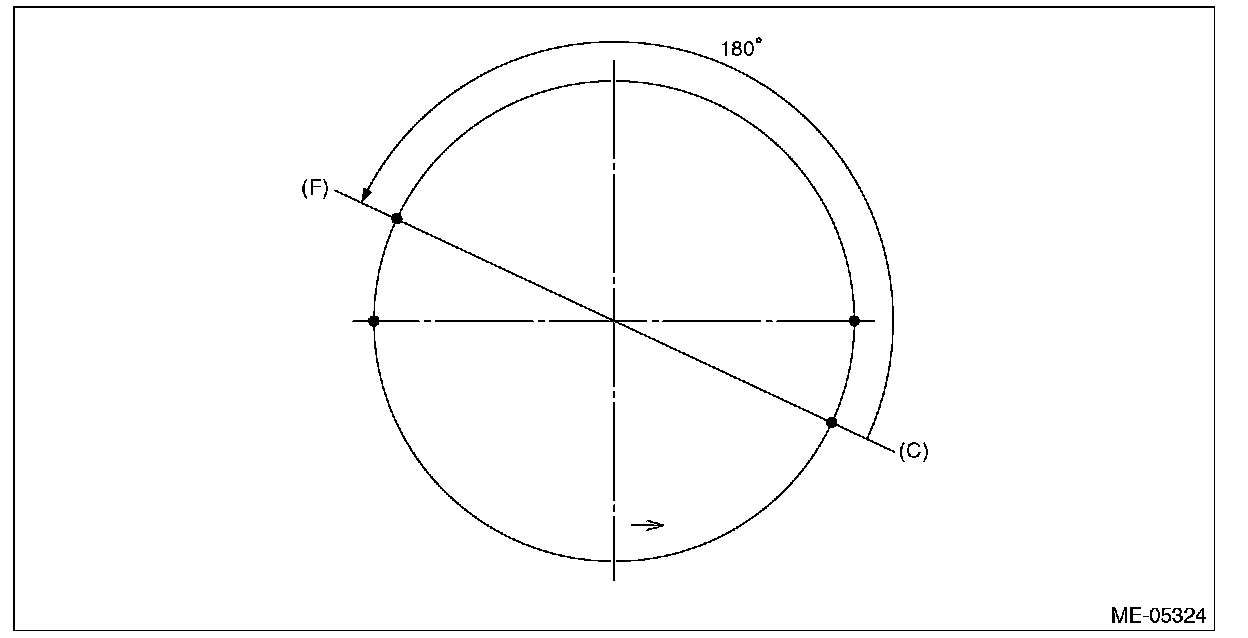 (5) Position the ring gap of expander at (F) in the figure on the 180° opposite direction of (C).