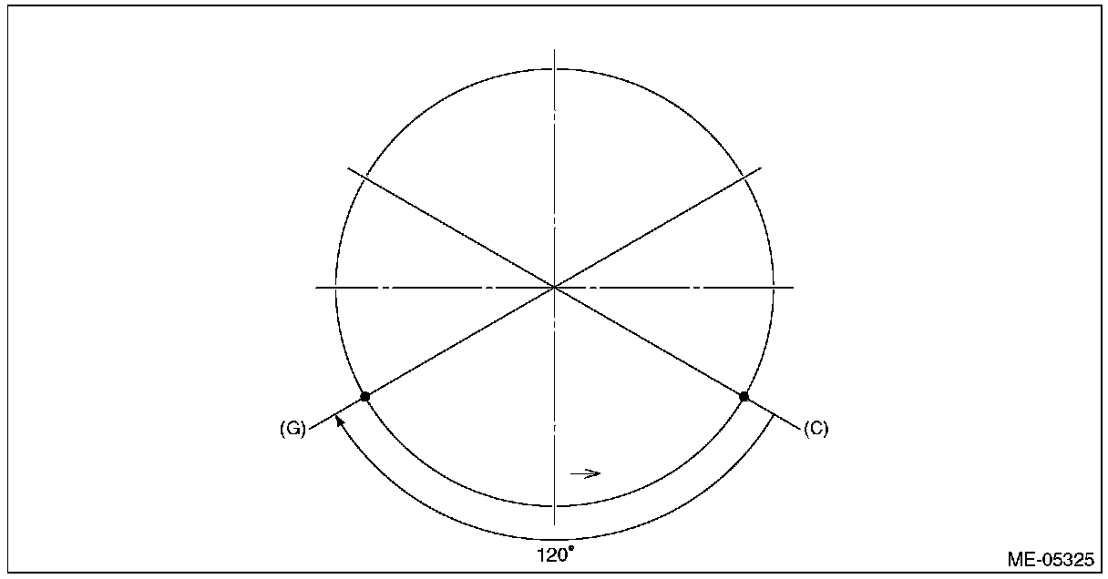 (6) Set the ring gap of lower rail at position (G), located 120° clockwise from (C) in the figure.