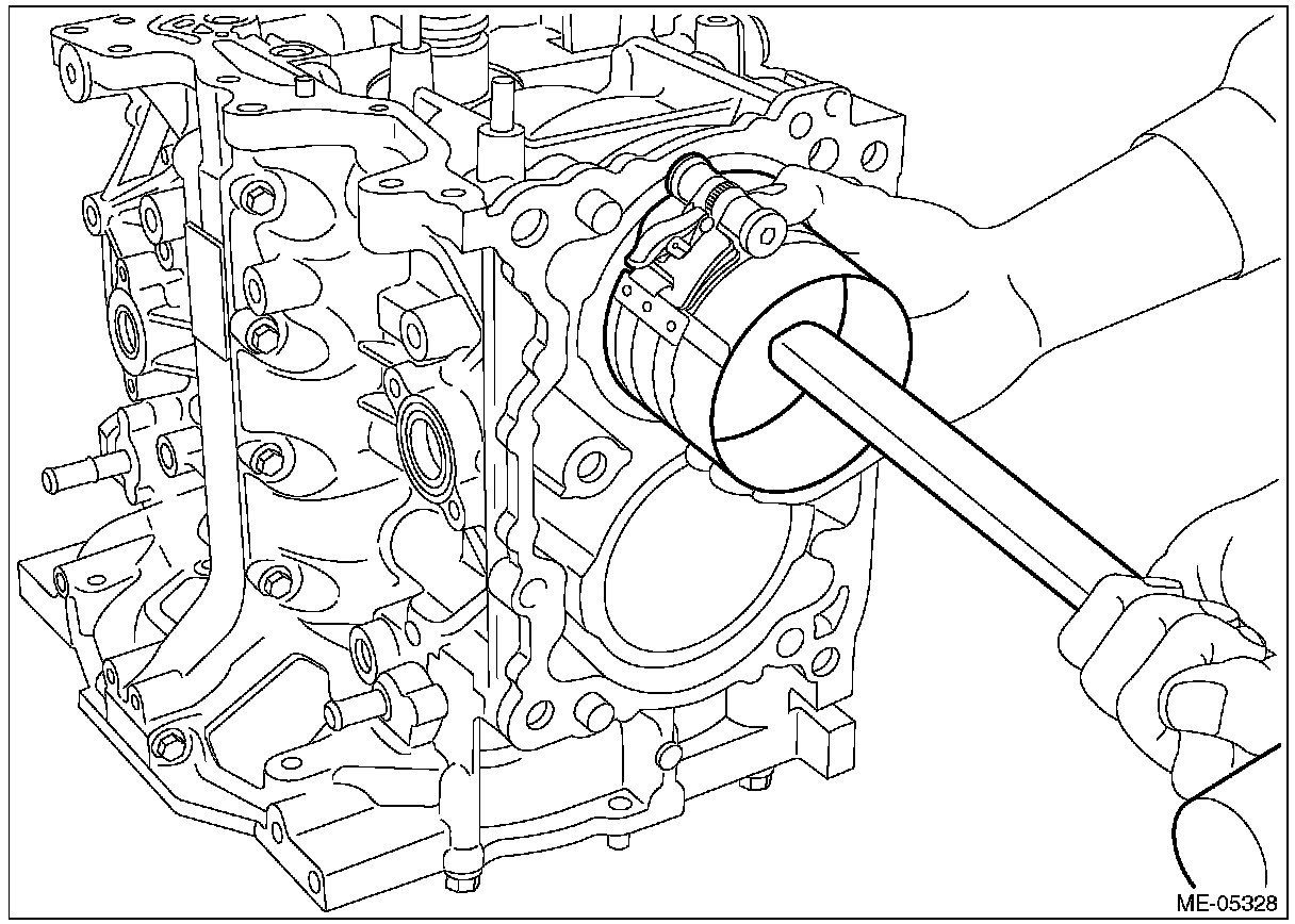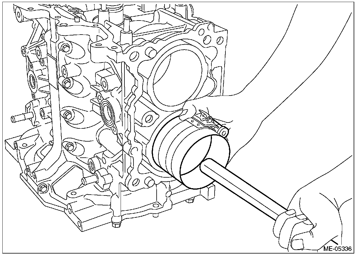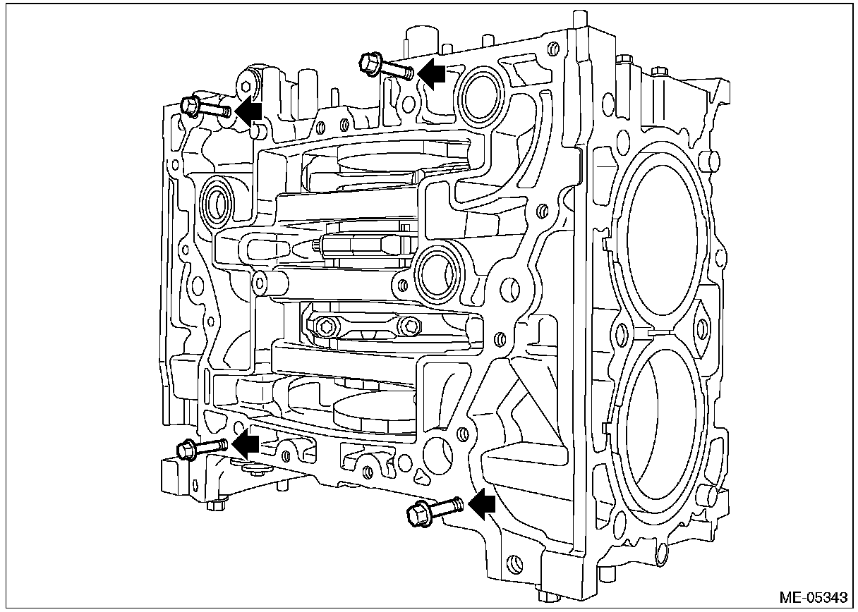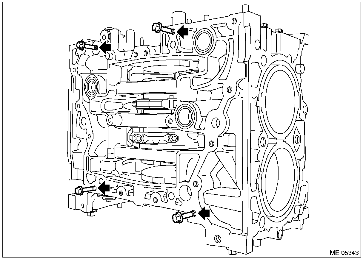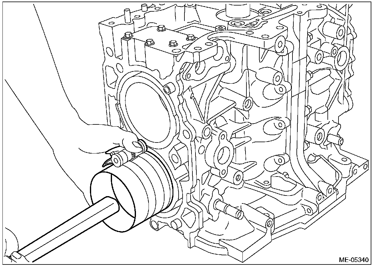 ^ Be careful not to scratch the mating surface of cylinder block during work.