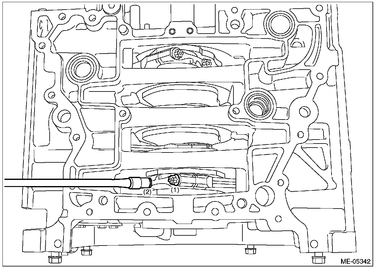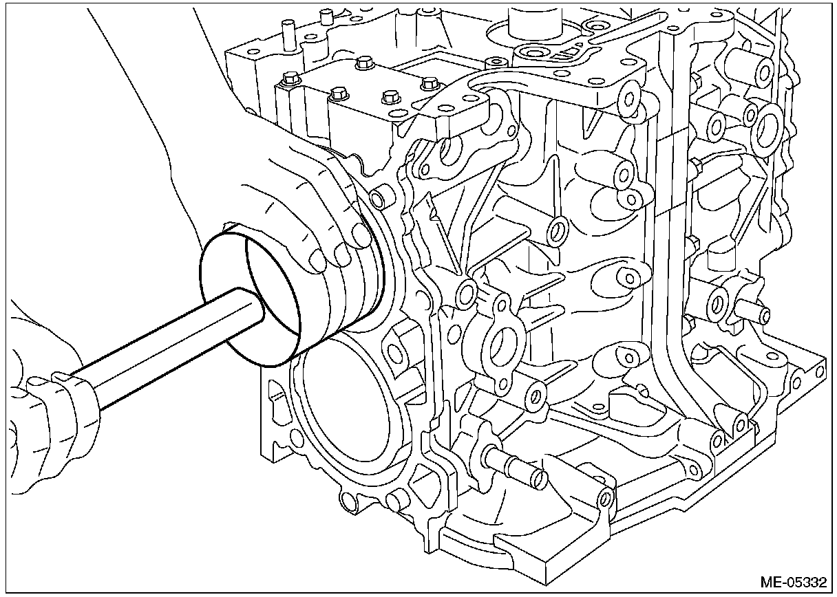 1) Apply engine oil to the crankshaft bearing, and install the crankshaft bearing to the cylinder block.