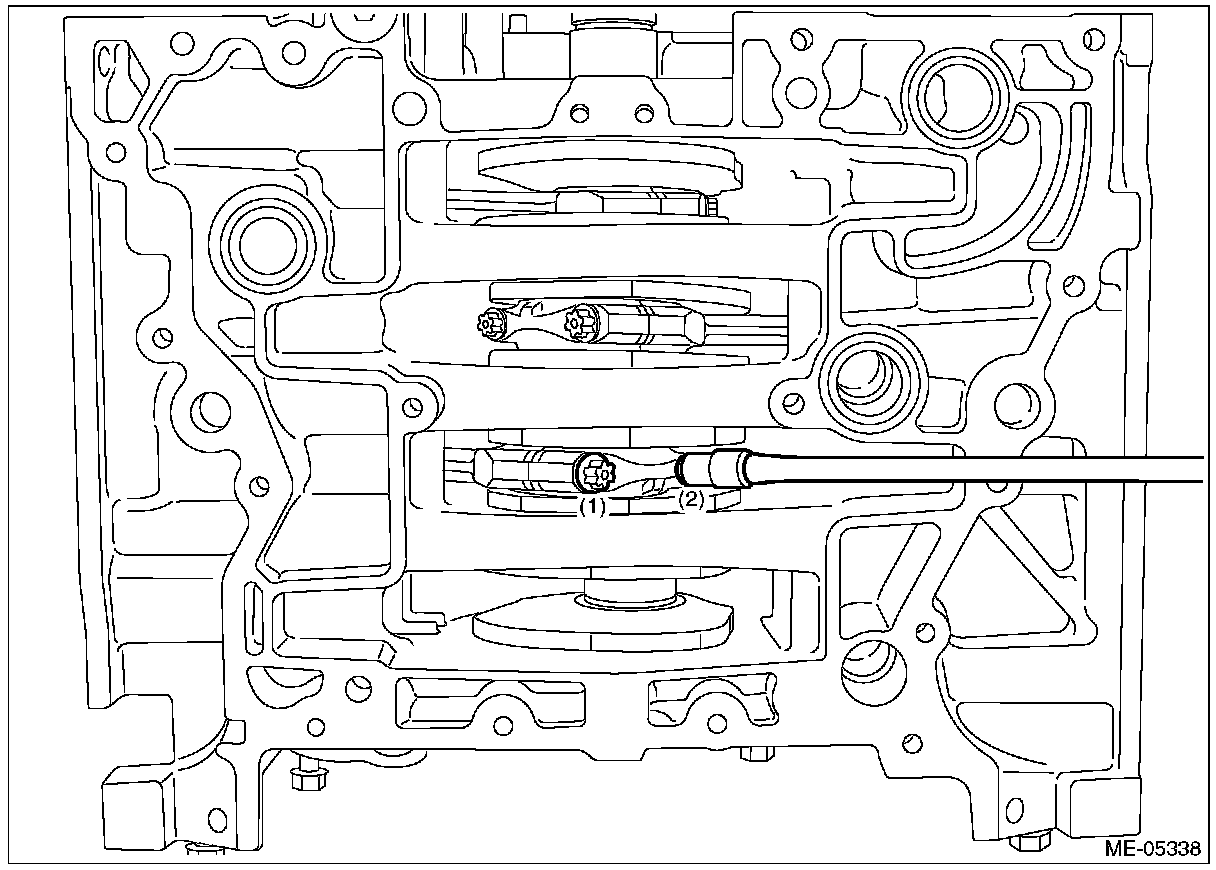 ^ Apply a coat of engine oil to the #2 connecting rod cap seat and the connecting rod bolt threads.