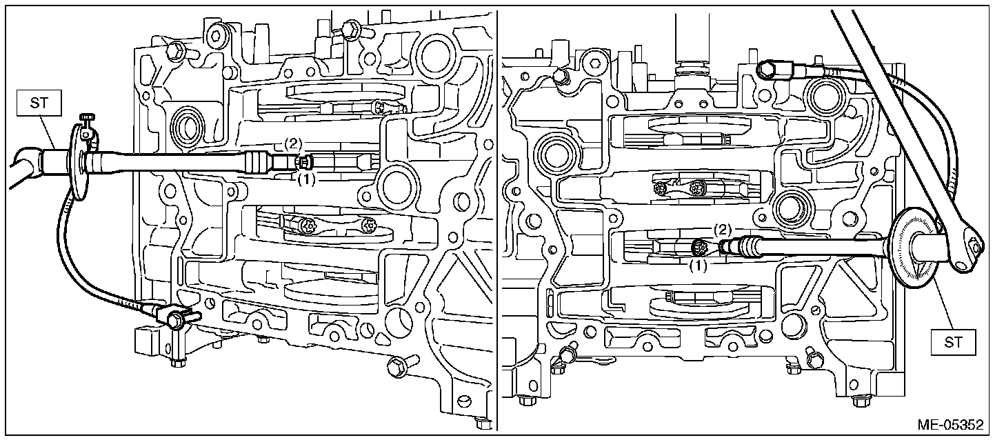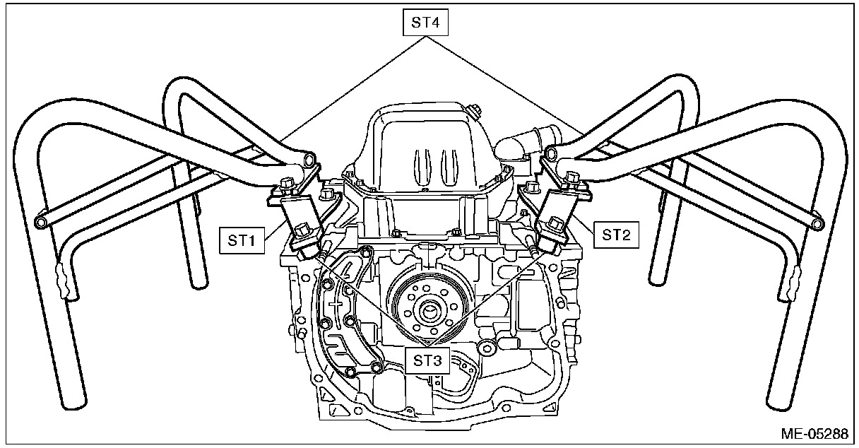 16) Install the ST1, ST2, ST3 and ST4 to the cylinder block and oil pan upper.