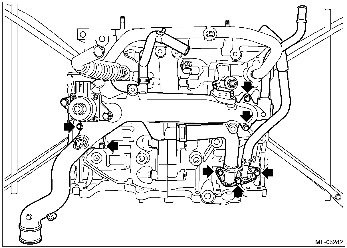 (12) Remove the cylinder head bolt attached at the locations shown in the figure.