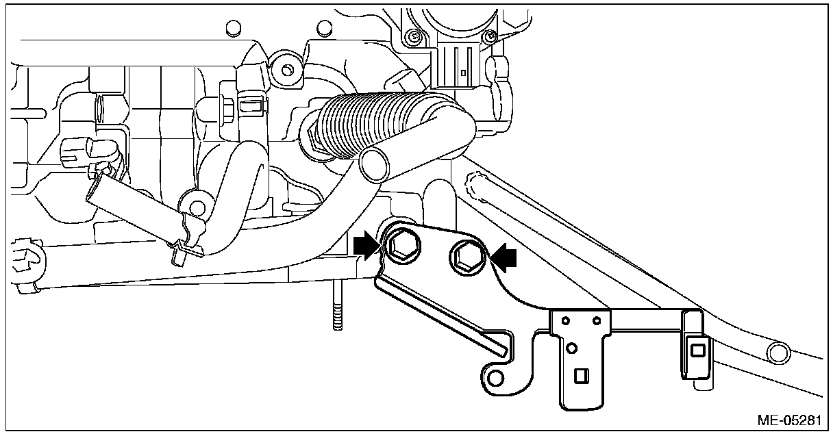 (23) Remove the cam carrier mounting bolts attached at the locations shown in the figure.