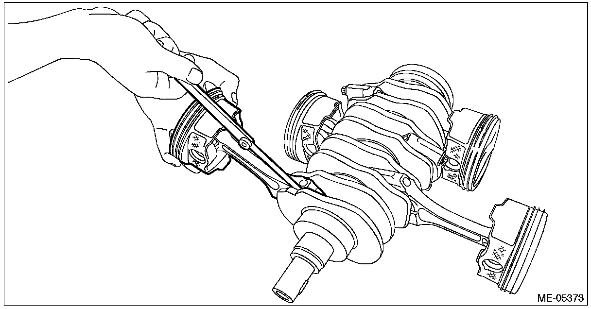 4) Remove the piston pin from piston, and remove the connecting rod from piston.