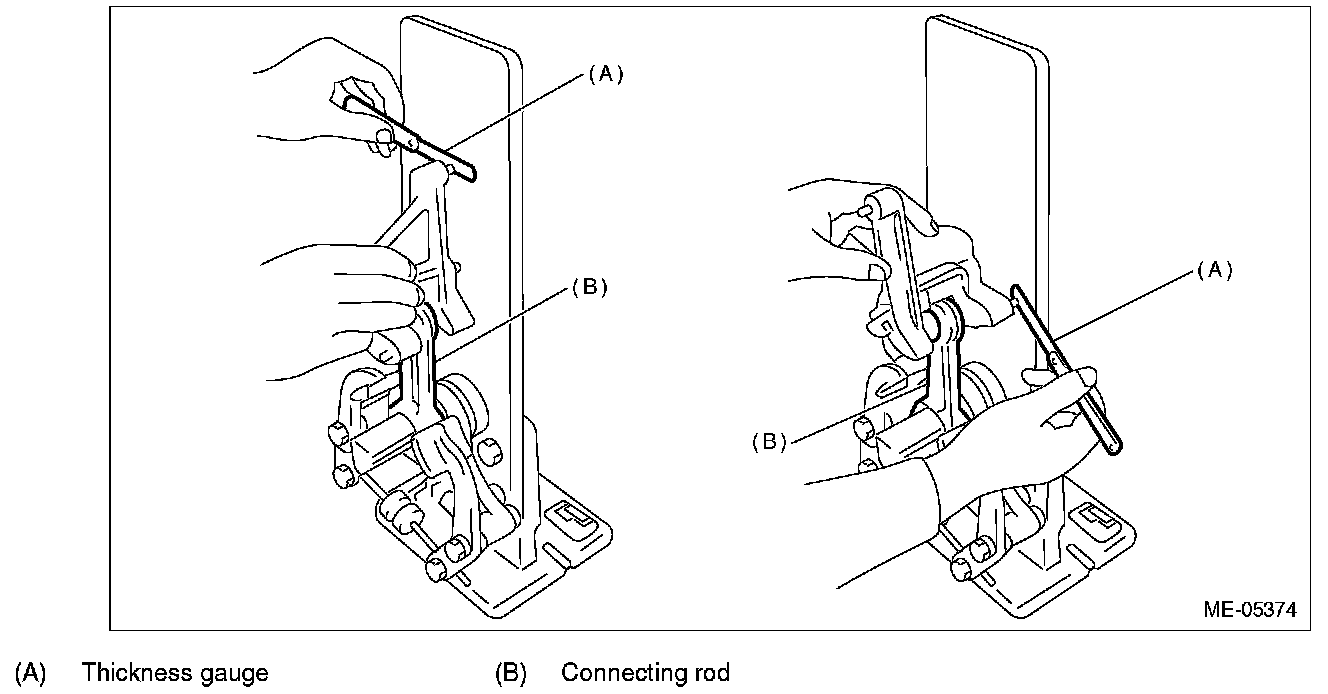 ^ Measure the thrust clearance of each connecting rod at several points, and replace the connecting rod if there is uneven wear.