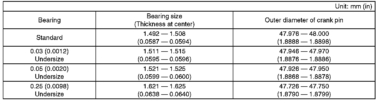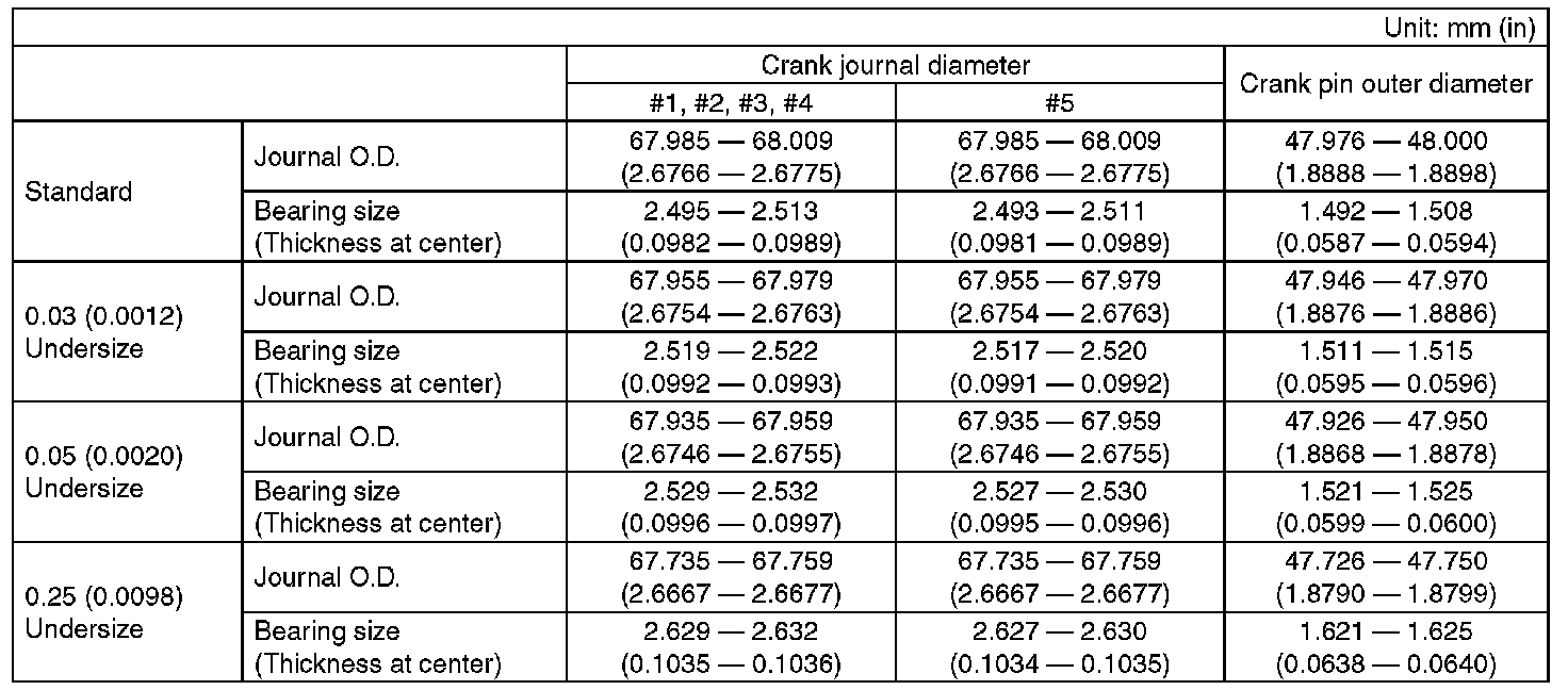^ When grinding to correct the crank journal or crank pin, finish them to the suitable dimensions as shown in the table below according to the undersize bearing to be used.