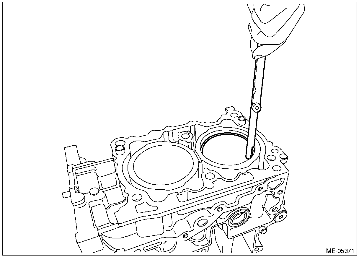 ^ Before measuring the clearance, clean the piston ring groove and piston ring.