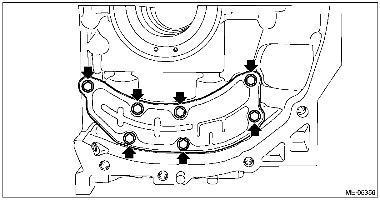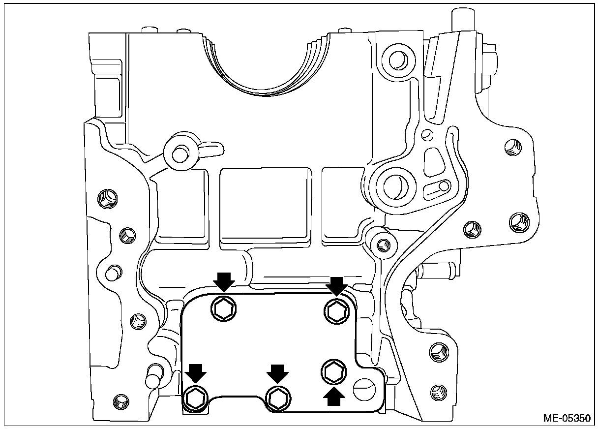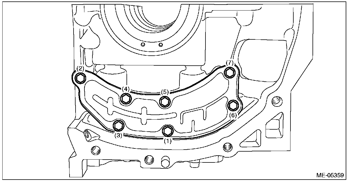 (2) Install the oil separator cover to the cylinder block RH, and tighten the oil separator cover bolts in numerical order as shown in the figure.
