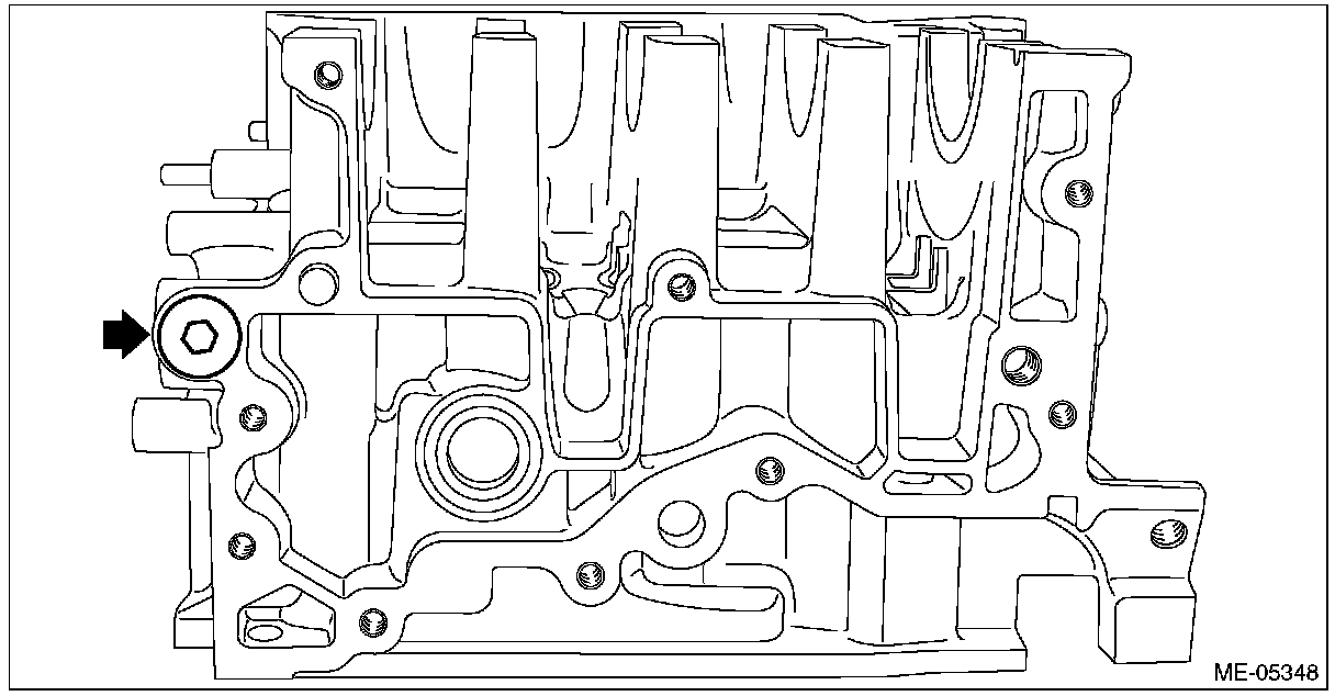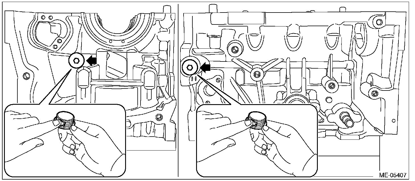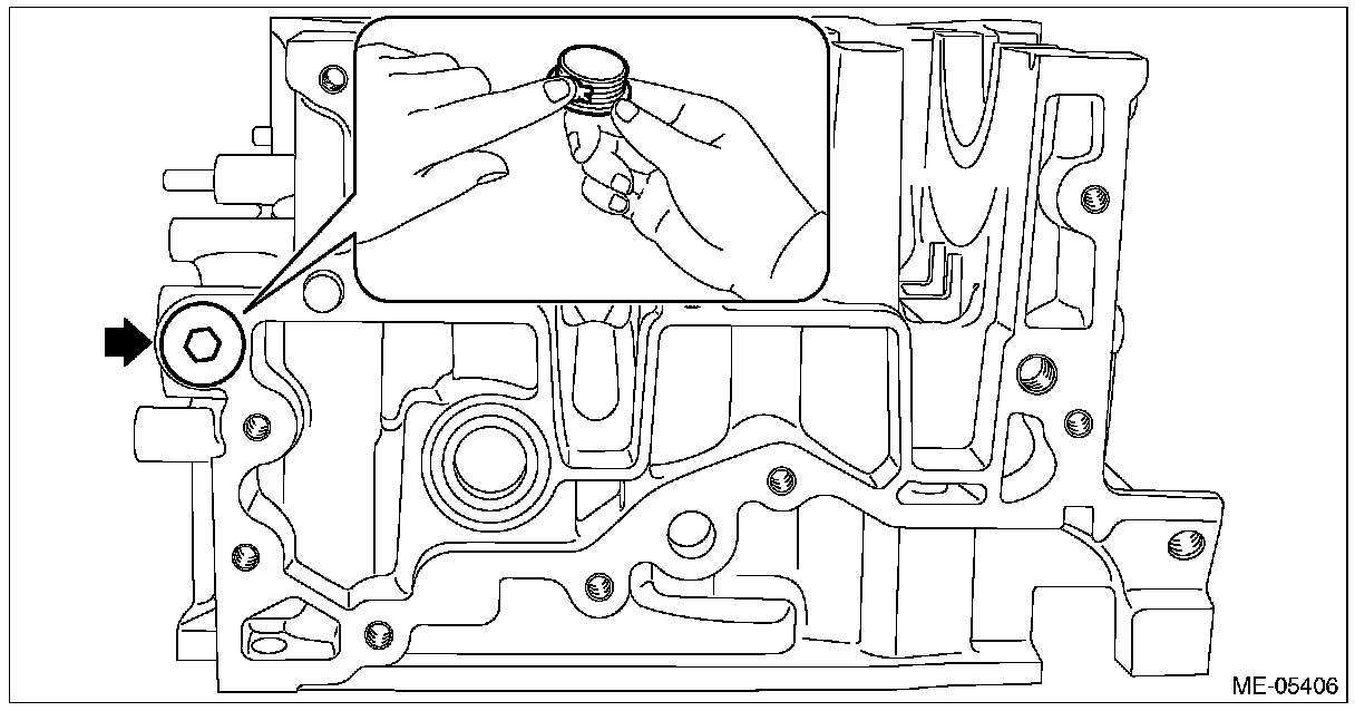 4) Remove the main gallery plug from cylinder block LH.