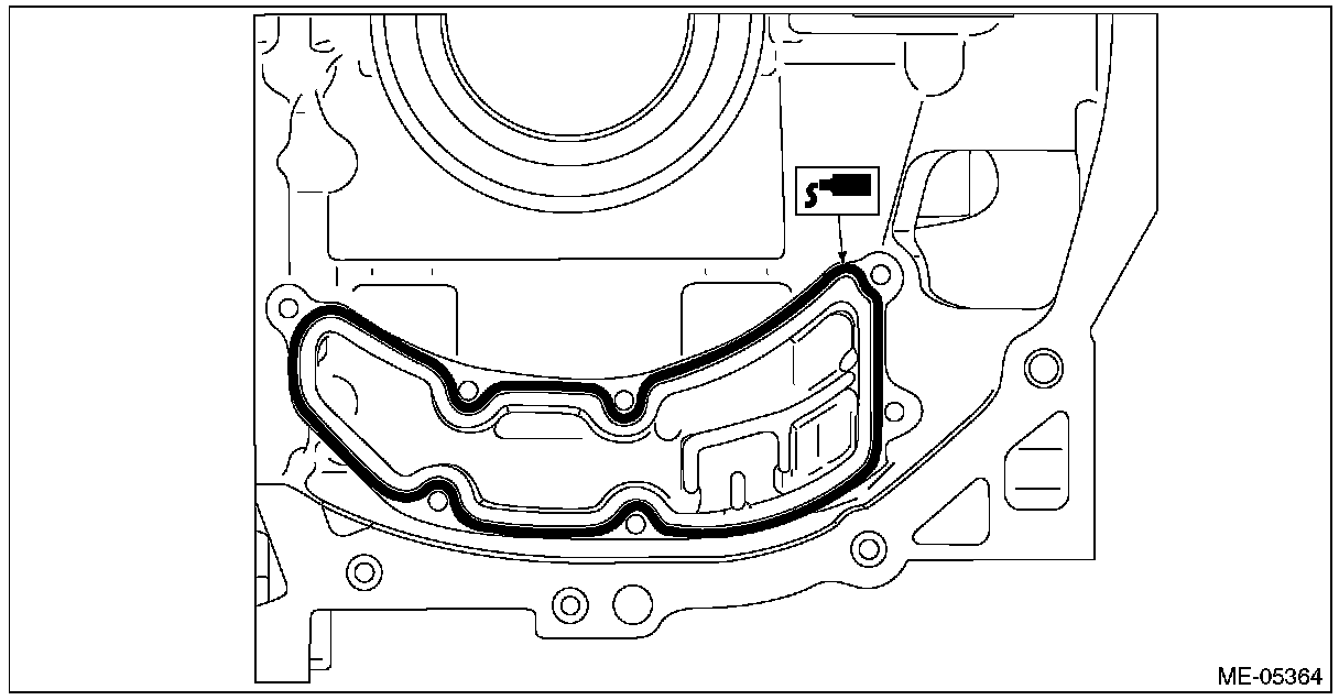 3) Apply liquid gasket to the threaded portion of the main gallery plug, and install the main gallery plug to the cylinder block LH.