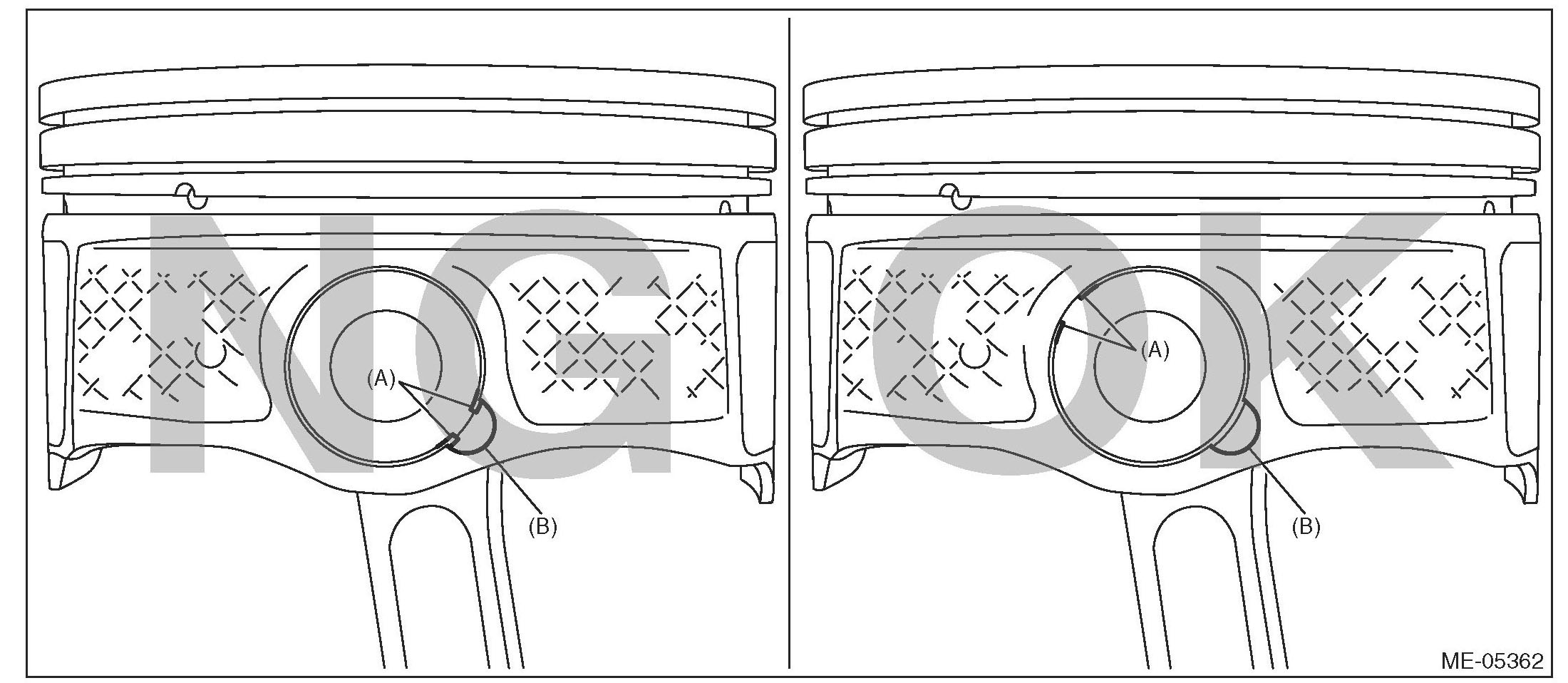 ^ Standard sized pistons are classified into two grades, "A" and "B". These grades should be used as guide lines in selecting a standard piston.