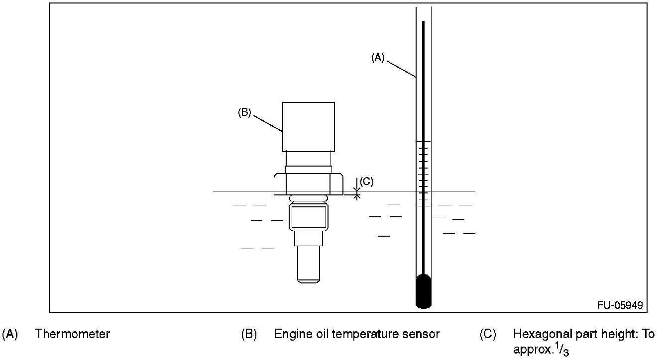 2. Immerse the engine oil temperature sensor and a thermometer in water.