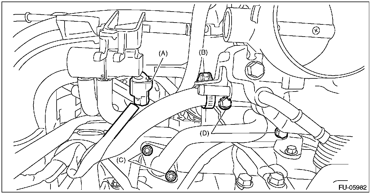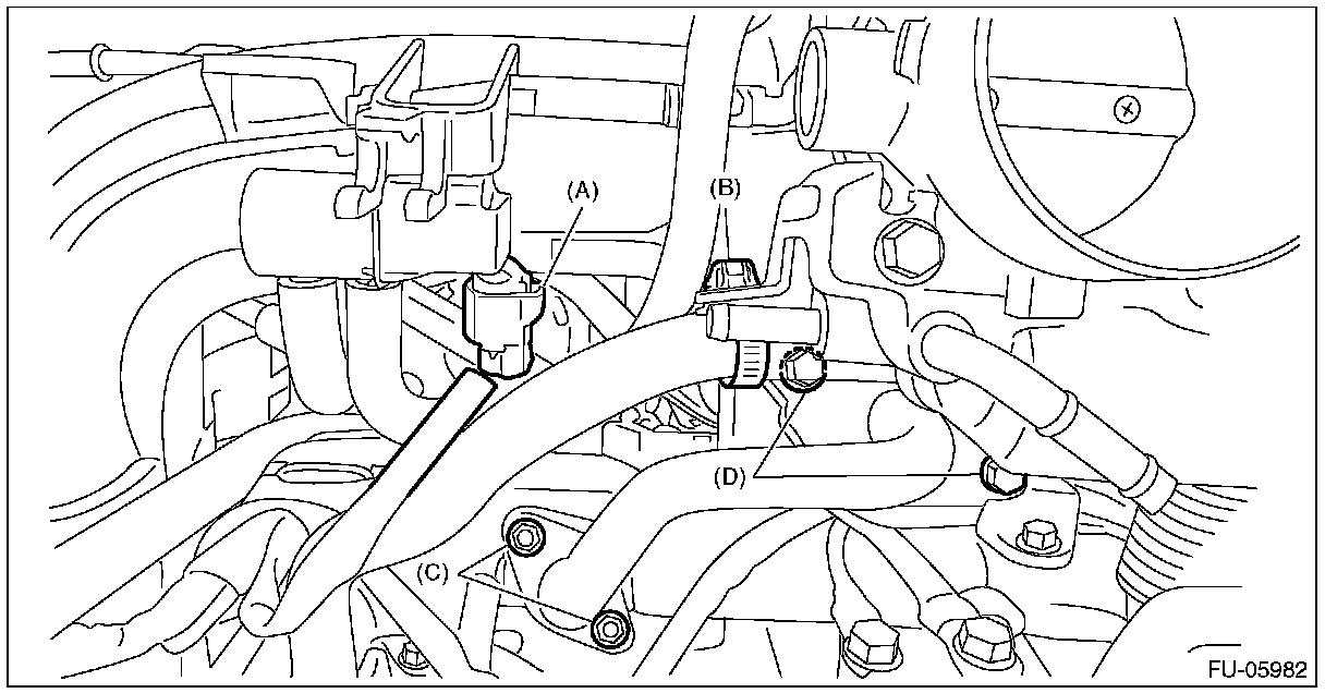 - Always tighten the EGR pipe at (C) first, and then (D).