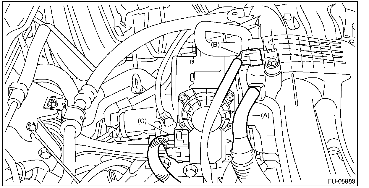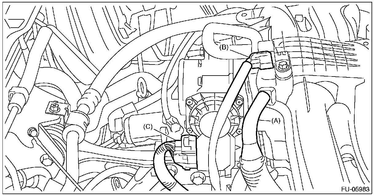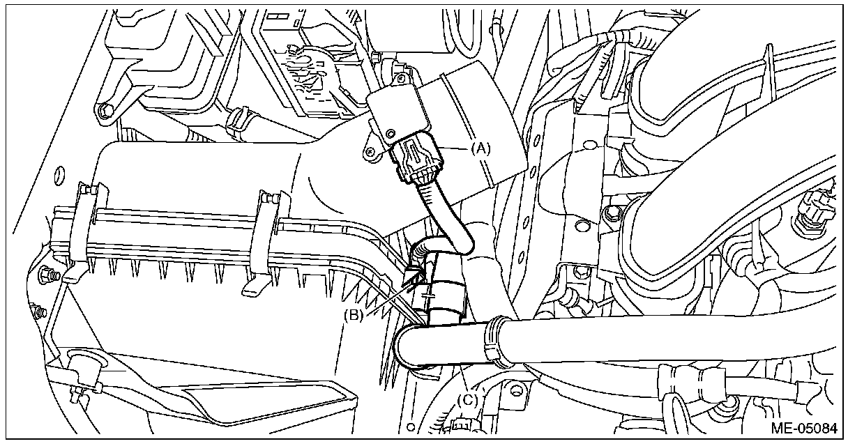 10 Install the suction hose (C) to the air cleaner case (rear).