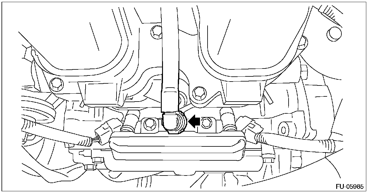 6. Drain approximately 3.0 l (3.2 US qt, 2.6 Imp qt) of coolant.