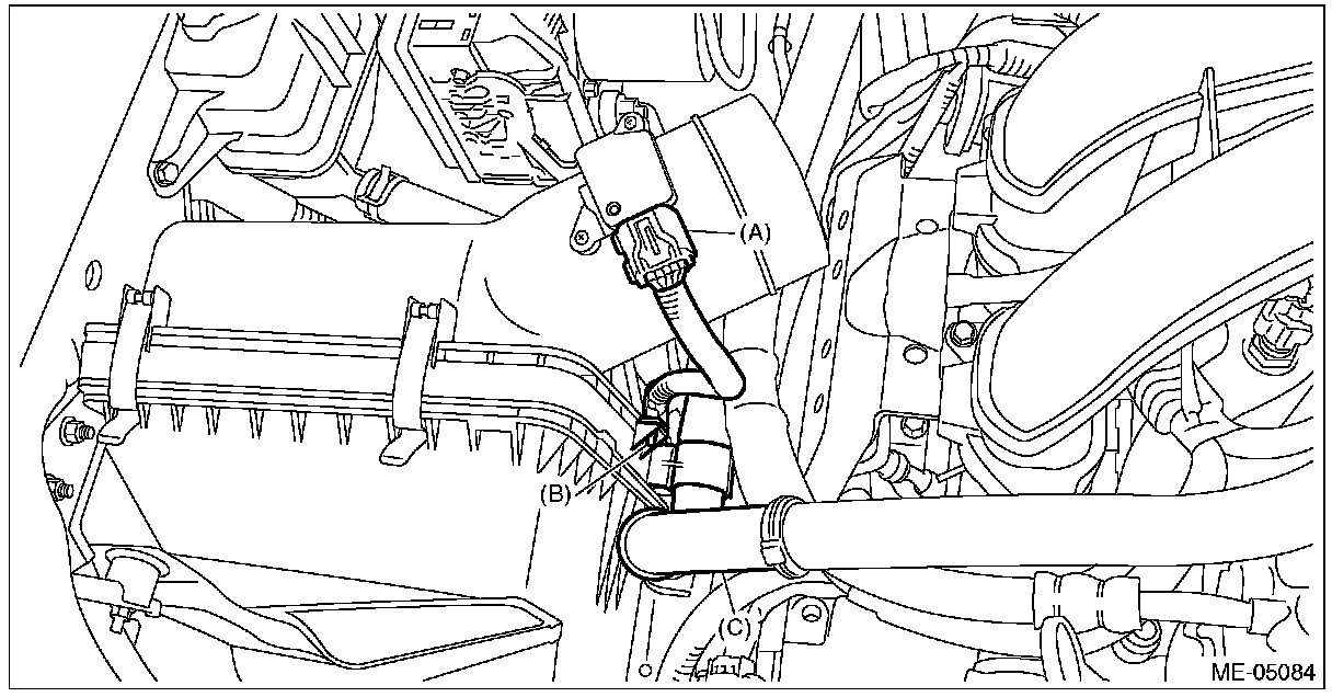 26) Install the suction hose (C) to the air cleaner case (rear).