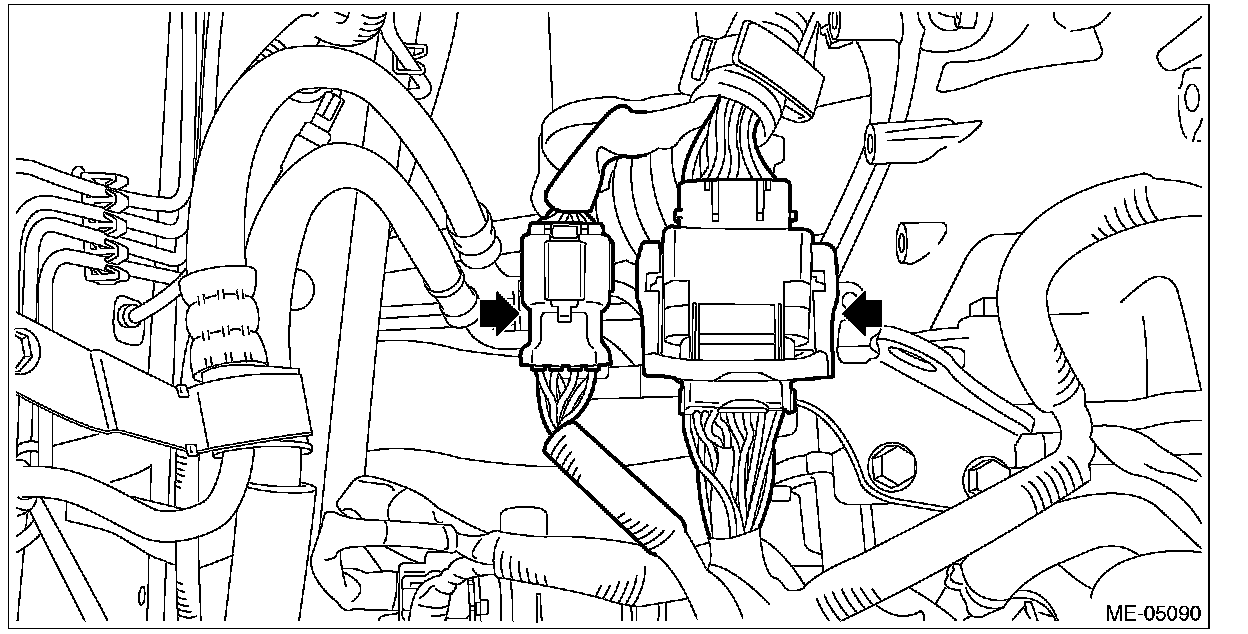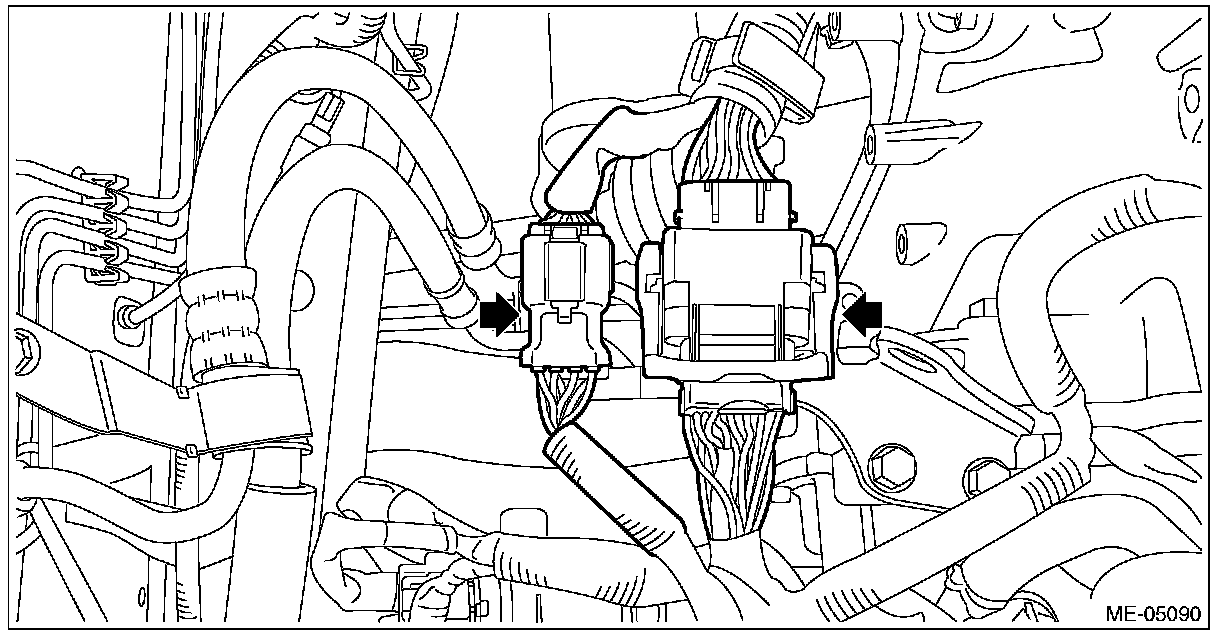 (1) Connect the bulkhead harness connector to the engine harness connector (black) and engine harness connector (brown).