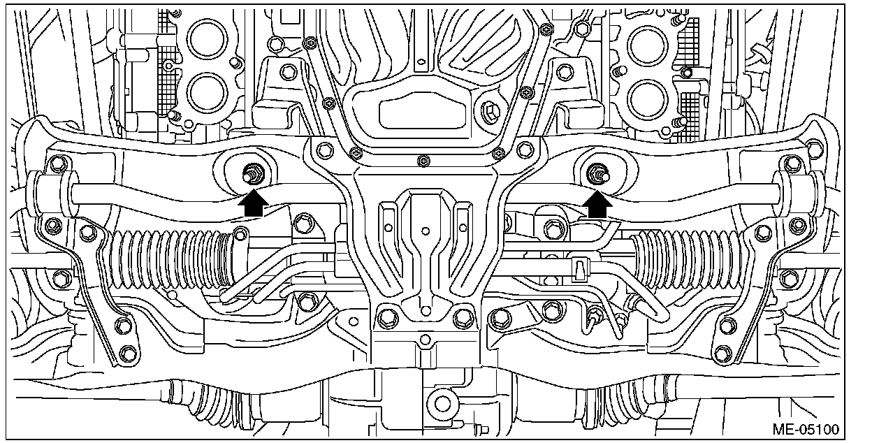22) Remove the nuts which secure the engine mounting to the front crossmember.