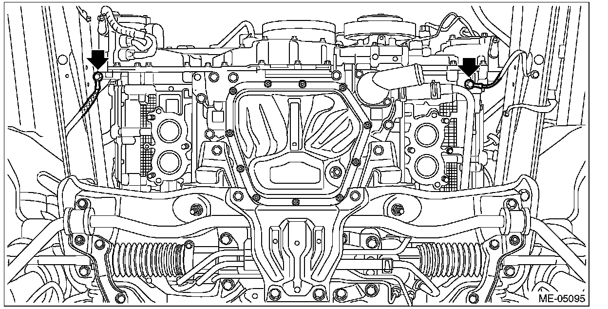 4) Tighten the bolts which hold upper side of transmission to engine.