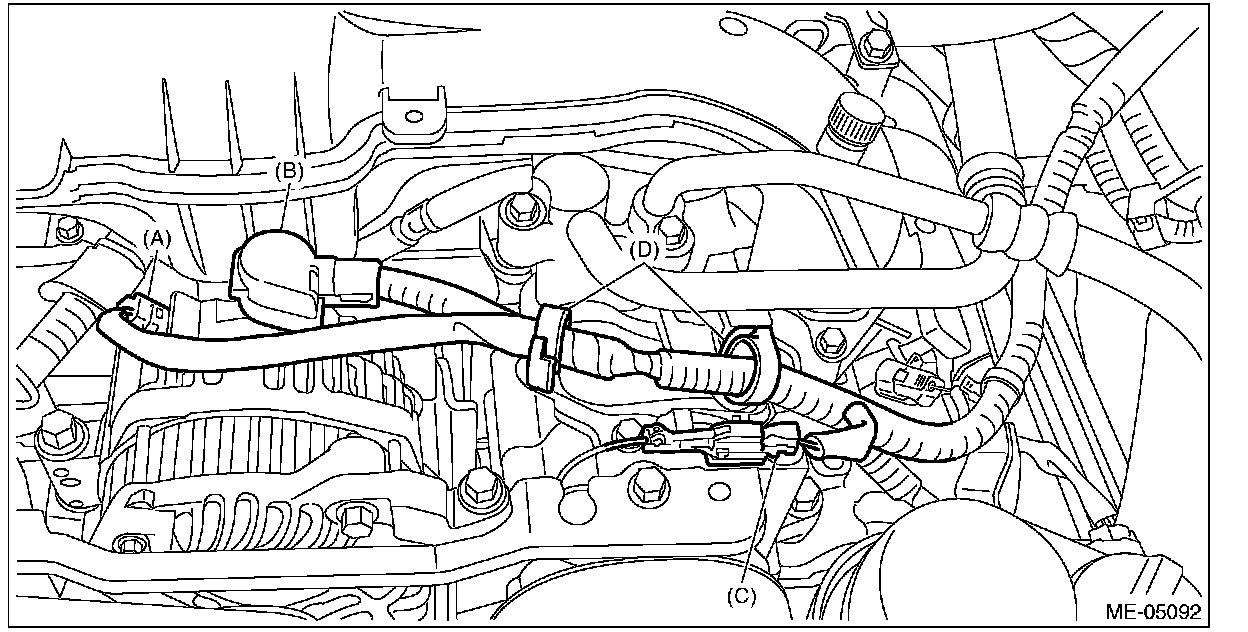 20) Connect connector (A) and terminal (B) to the generator, and connect connector (C) to A/C compressor.