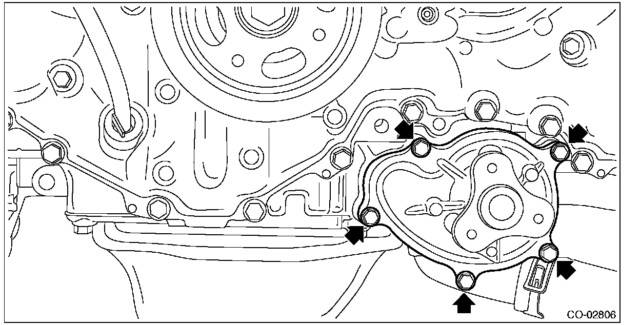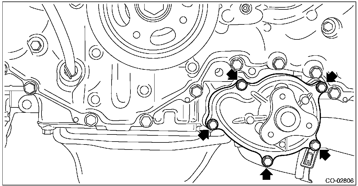 4) Remove the water pump from the oil pan upper.