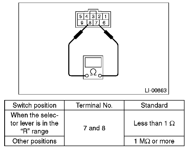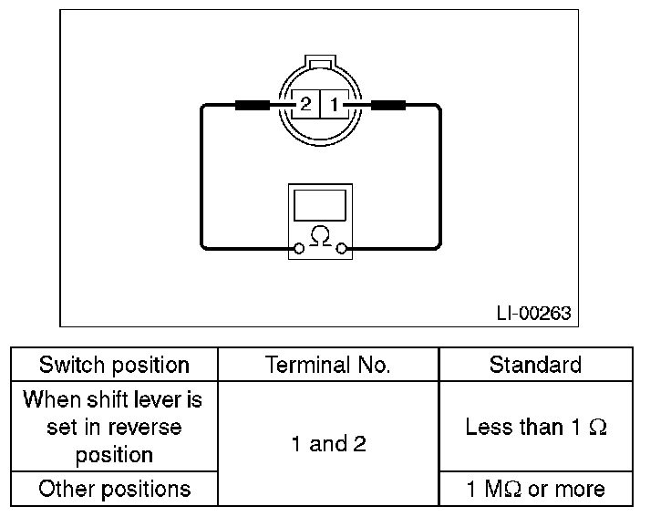 2. Replace the back-up light switch if the inspection result is not within the standard value.