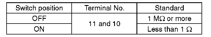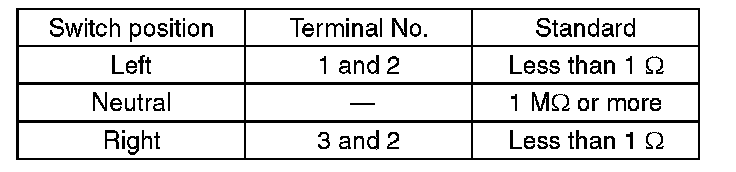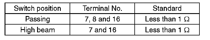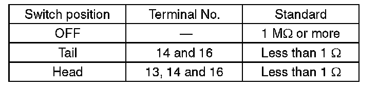 3. Replace the combination switch (light) if the inspection result of each switch is not within the standard value.