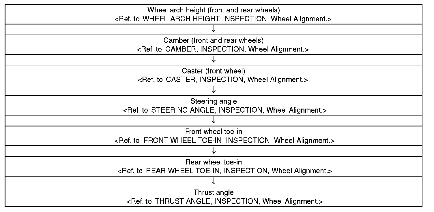 Check, adjust and measure the wheel alignment in accordance with the procedures indicated in the figure.