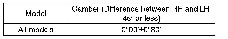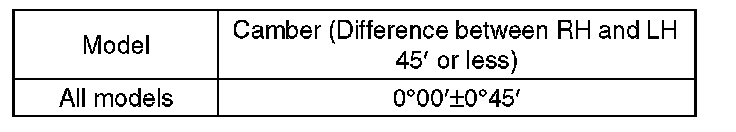 1) When adjusting the camber, adjust it to the following value.