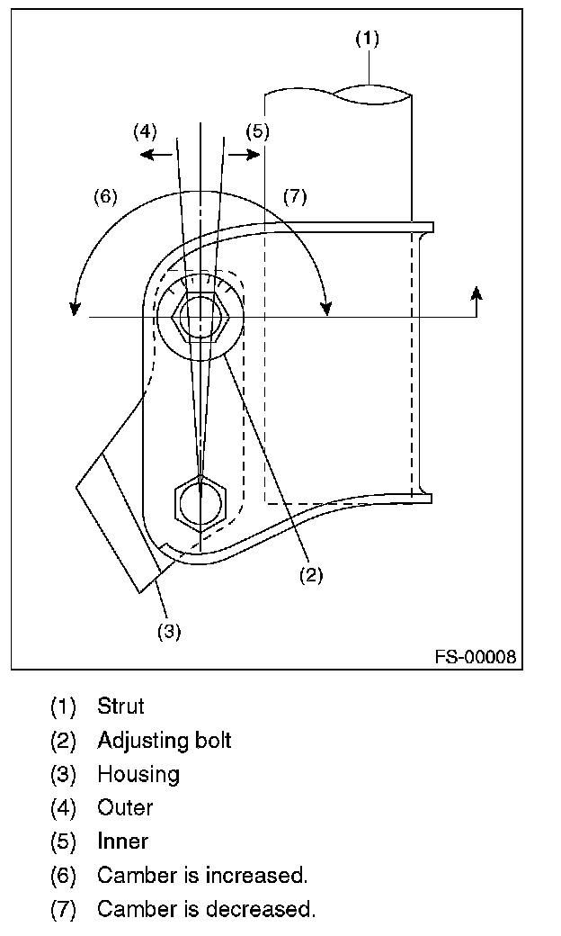 3) Turn the camber adjusting bolt so that the camber is set at specification.