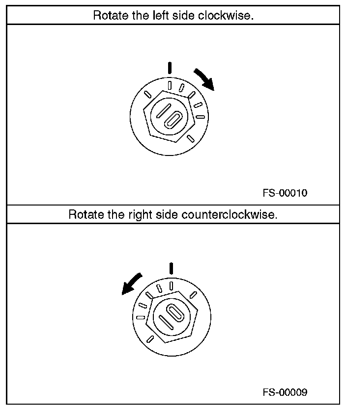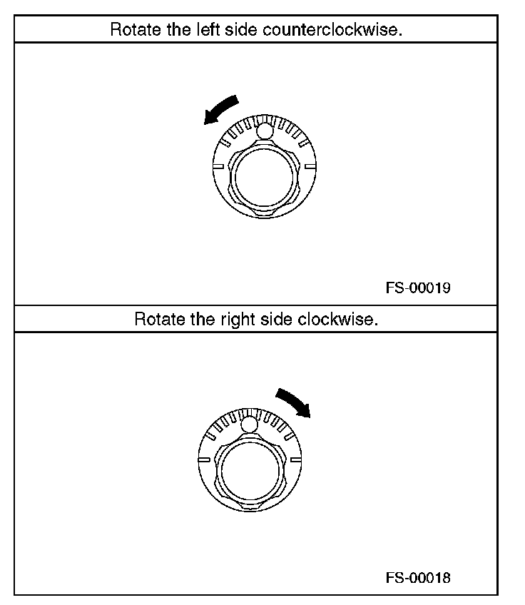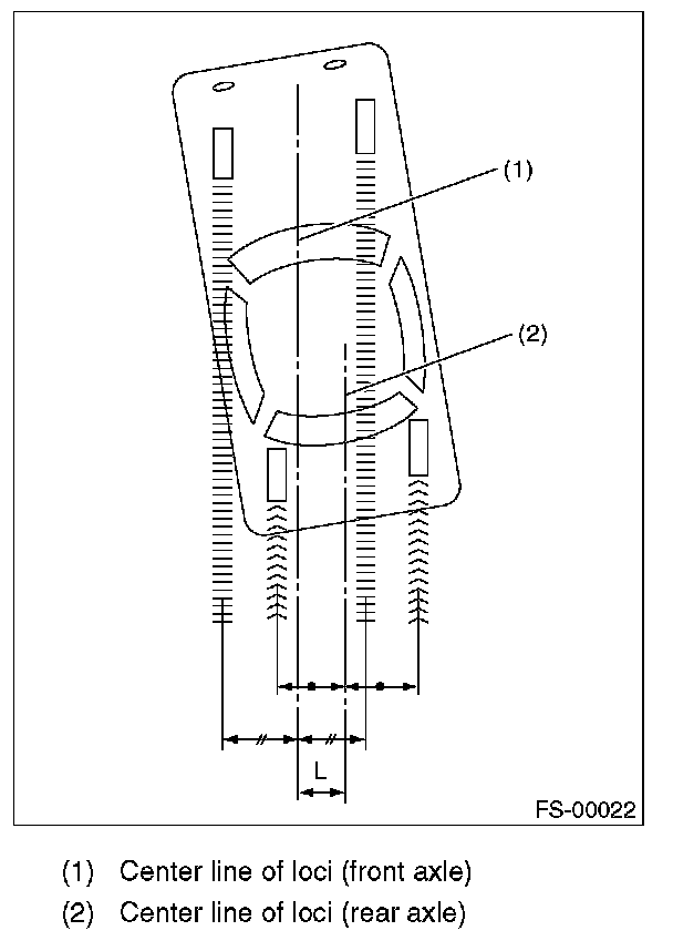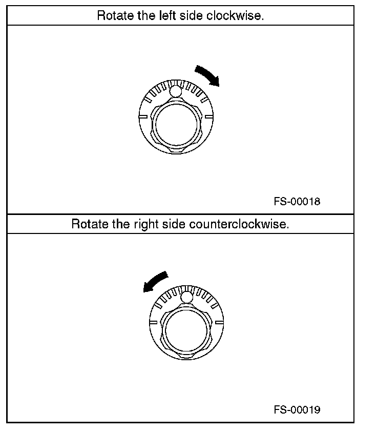 2) When one rear wheel is adjusted in a toe-in direction, adjust the other rear wheel equally in toe-out direction, in order to make the thrust angle adjustment.