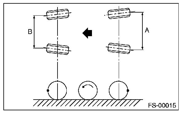 2) Place a mark at the center of both left and right tires, and measure distance "A" between the marks.