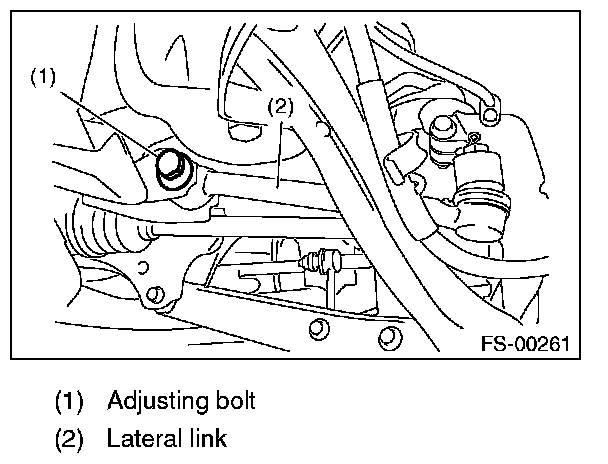 2) Turn the adjusting bolt until toe-in is within the specification.